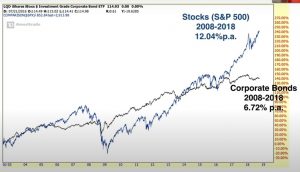 In the last 10 years, the stock market (S&P 500) was written at 12.04%p.a compared to corporate bonds that have written 6.72%p.a.